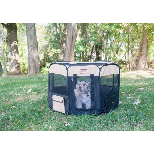 Black & Beige Portable Pet Playpen & Bag Combo - Model PP003BGE