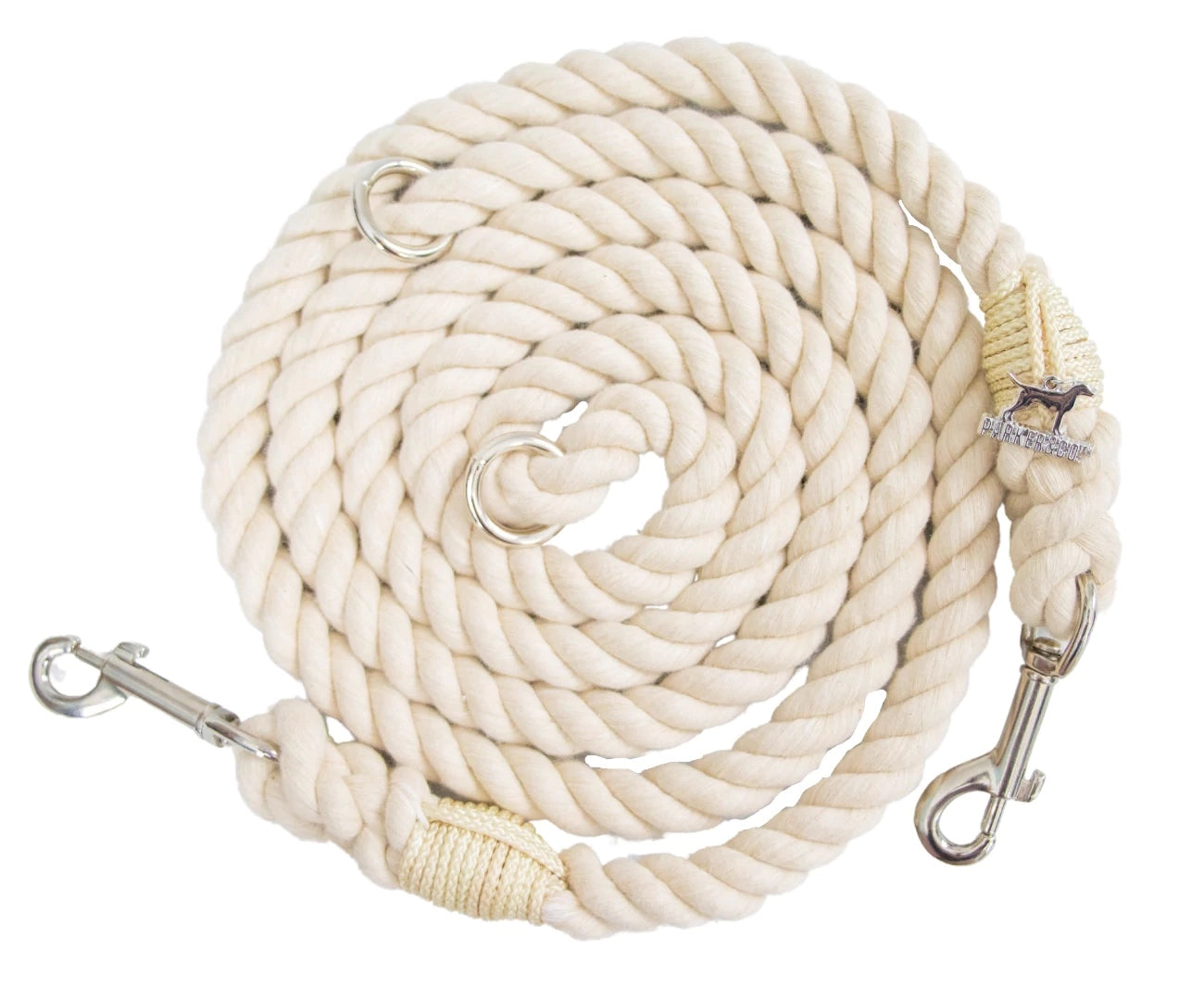 This Hands-Free Rope Leash is extra soft, long-lasting, and handcrafted in Canada using 100% natural three-strand cotton rope. Our hands-free leash can be used in 6 different ways and has adjustable o-rings to suit your exact needs!