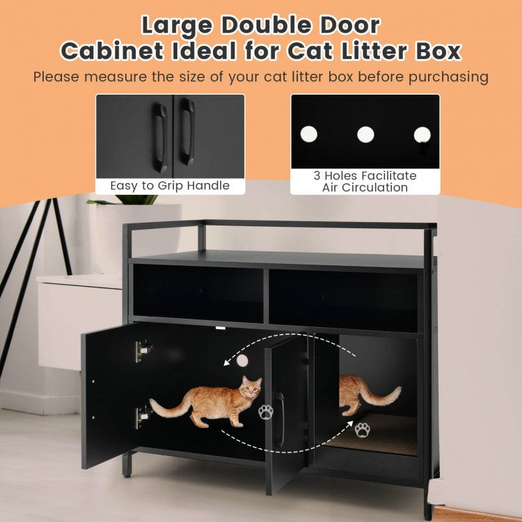 Black Hidden Cat Washroom with Double Doors & Scratch Cardboard- Model #96873451