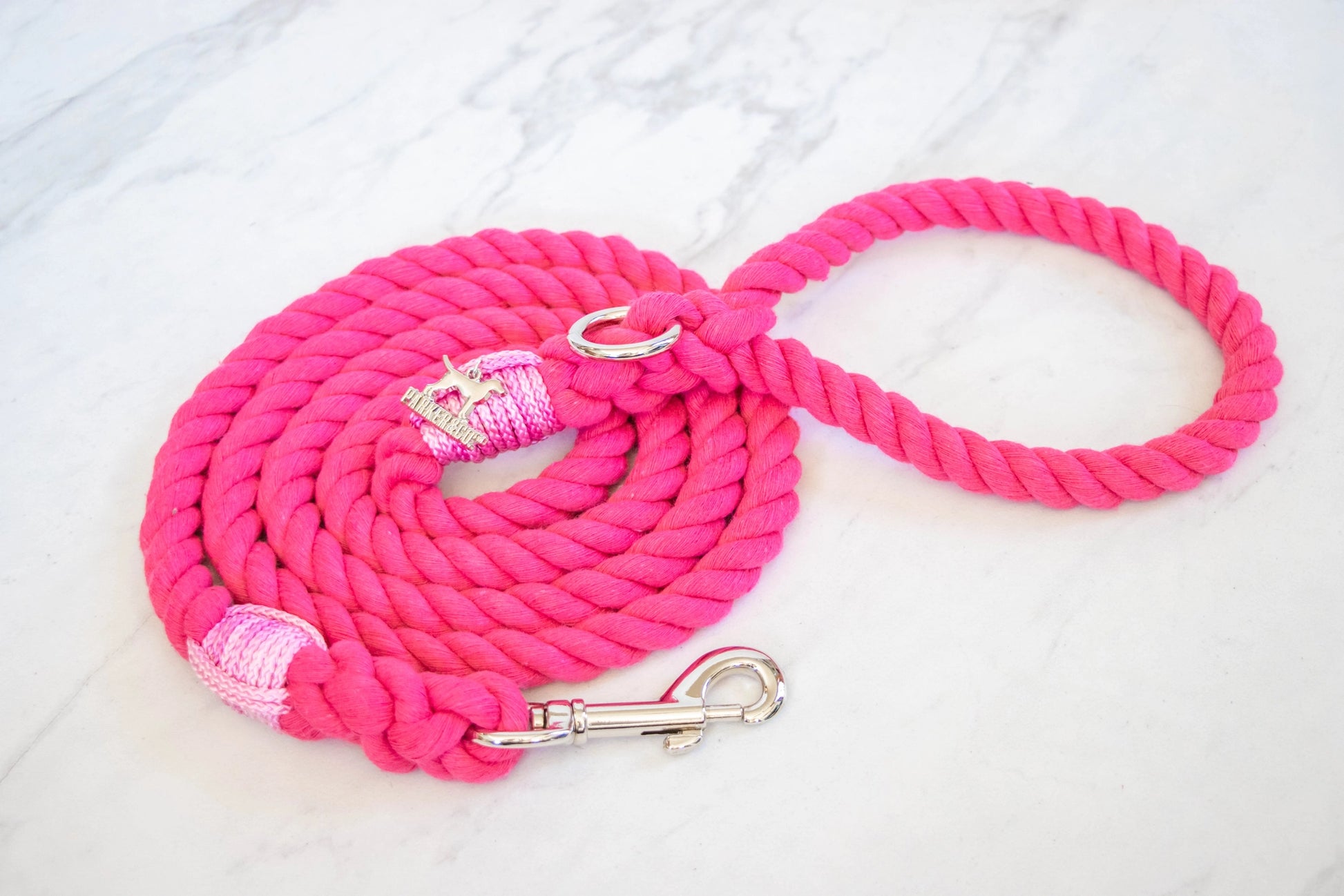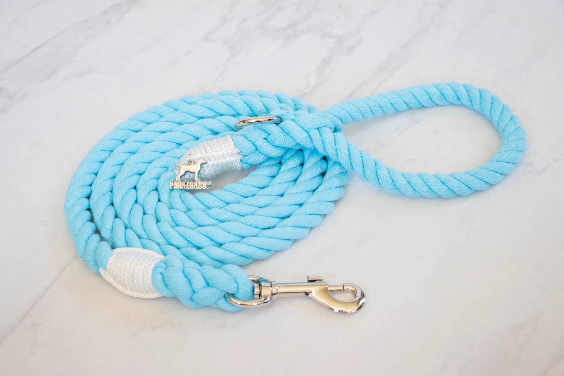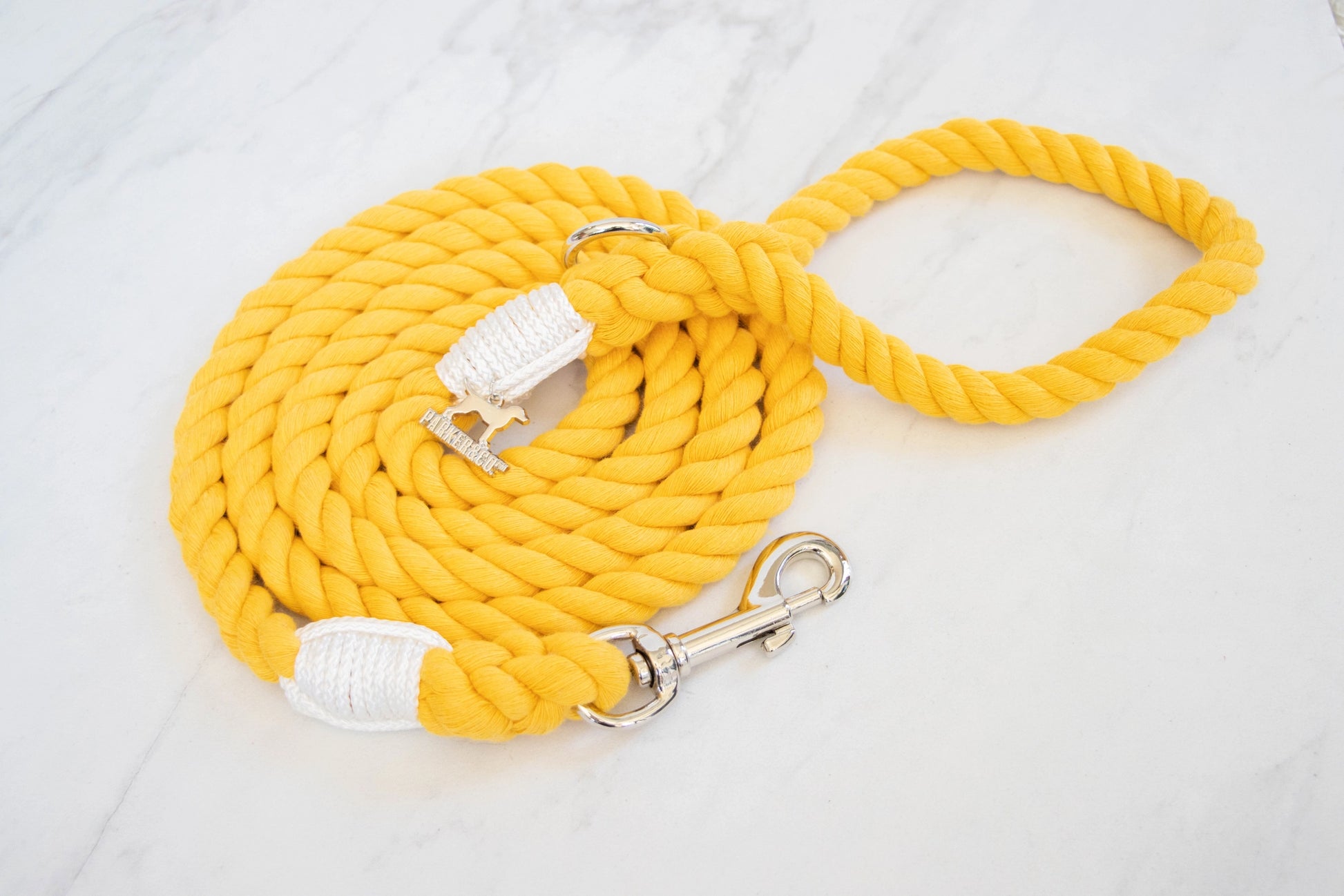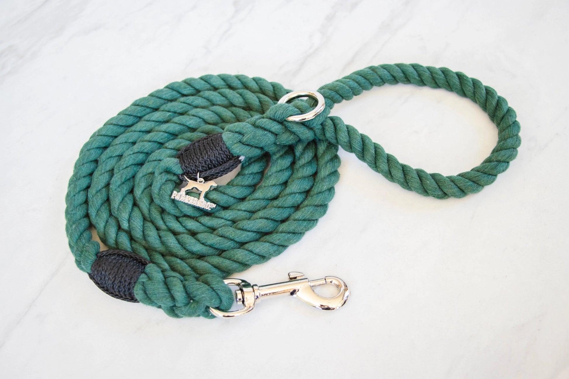 In North America, 10 million tonnes of used textile waste is sent to the landfill each year. The rope used in these leashes is made by upcycling that waste into soft cotton yarns. No dyes, water, or chemical products are used to colour match the upcycled yarns. Handle Rope: 100% natural upcycled cotton (break strength 2155 lbs). These Cotton Rope Leashes are renewable, long-lasting, and eco-friendly!