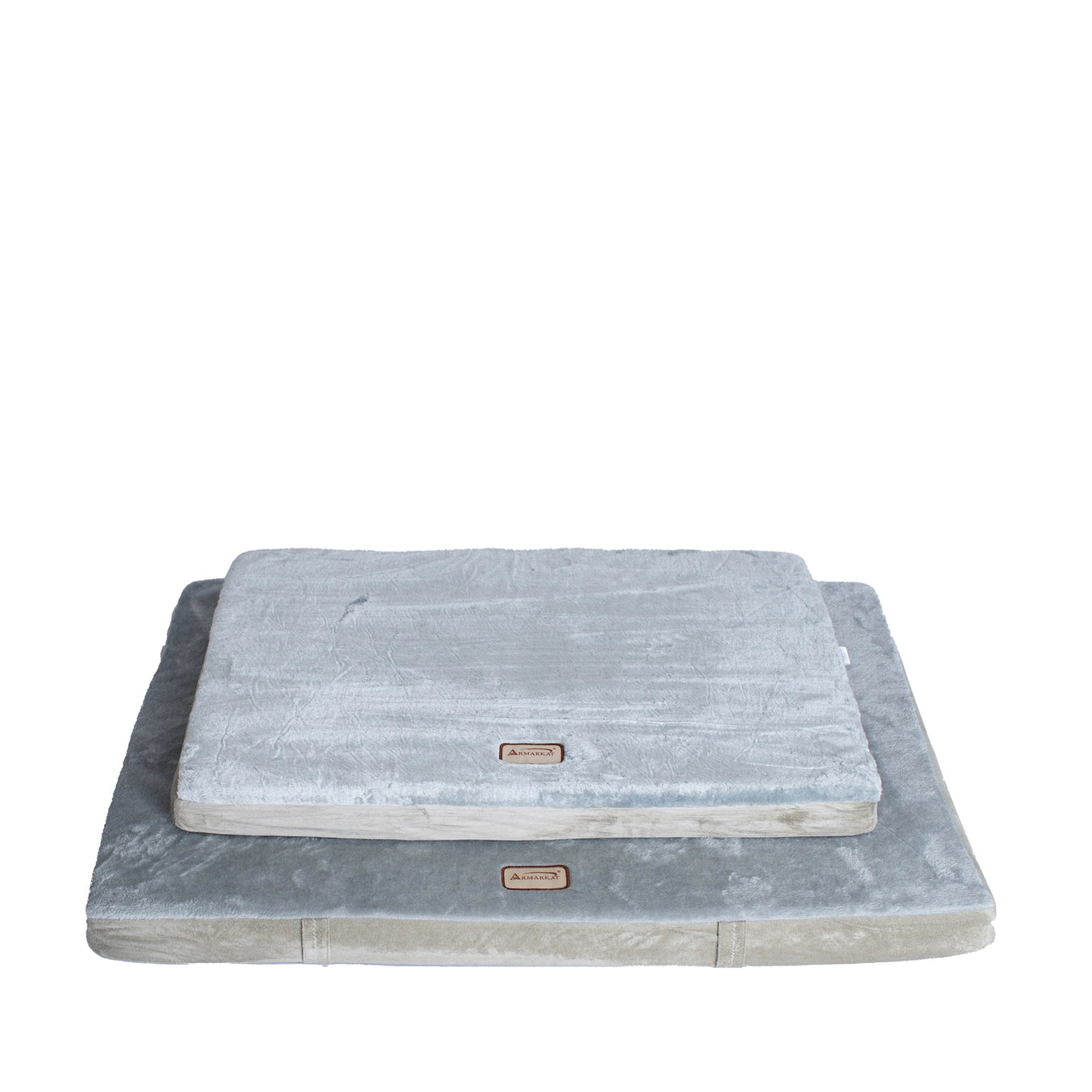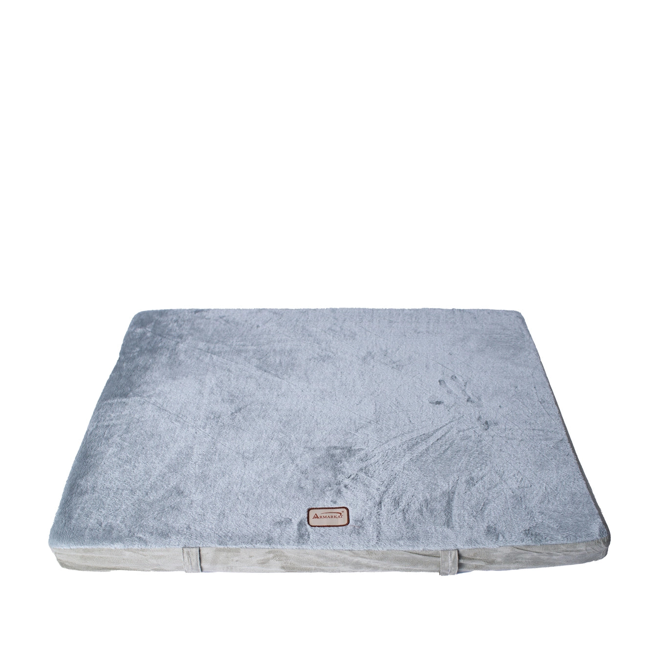 Surround your pet in buttery faux suede and silky soft plush with this small memory foam orthopedic pet bed mat. Offered in sage green and gray, the mat has a waterproof and skid-free base. It is filled with real memory foam for maximum comfort. The zippered opening allows for easy cover removal. The cover is machine washable, and the lining is waterproof for easy spot cleaning.