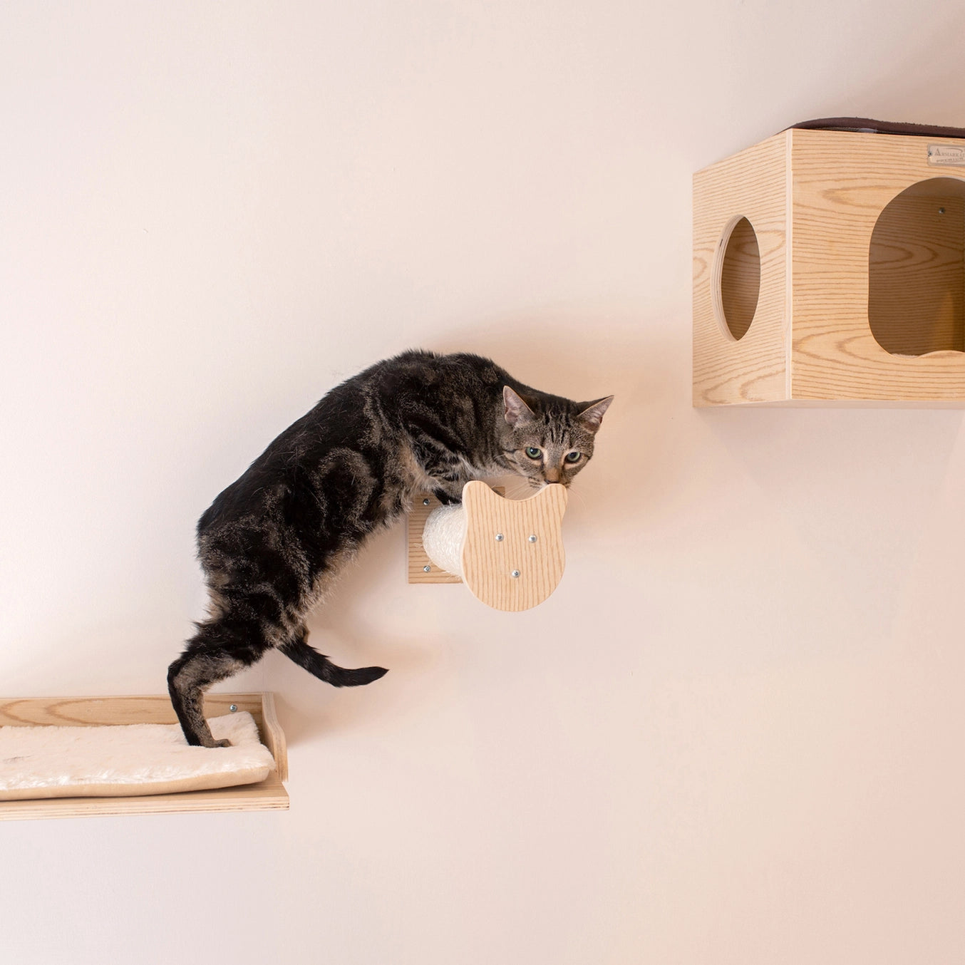 Transform your wall into a feline paradise with our Wall Series: Tree Condo, Perch, and Step! Designed to provide endless entertainment and exercise, your cat will love climbing, jumping, and perching on this multi-level structure. Bring the outdoors in and satisfy your cat's natural instincts with this unique addition to your home.
