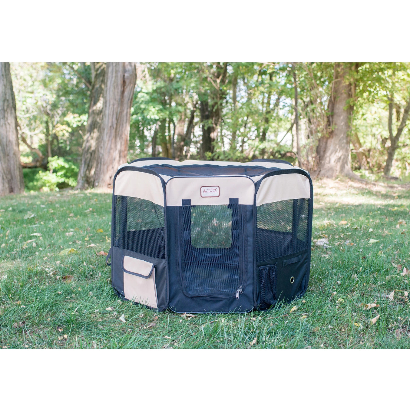 XL Black & Beige Portable Pet Playpen & Bag Combo - Model PP003BGE